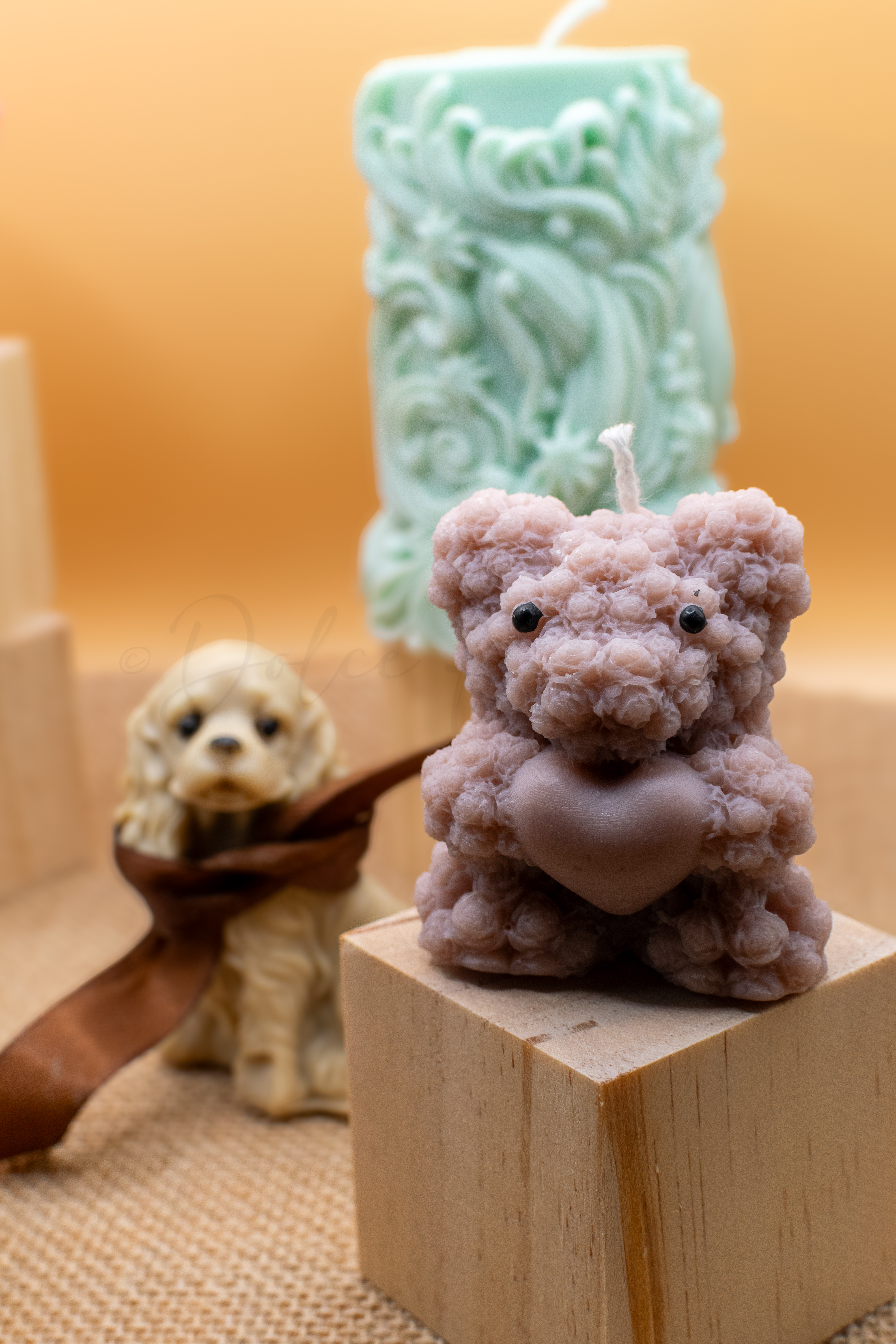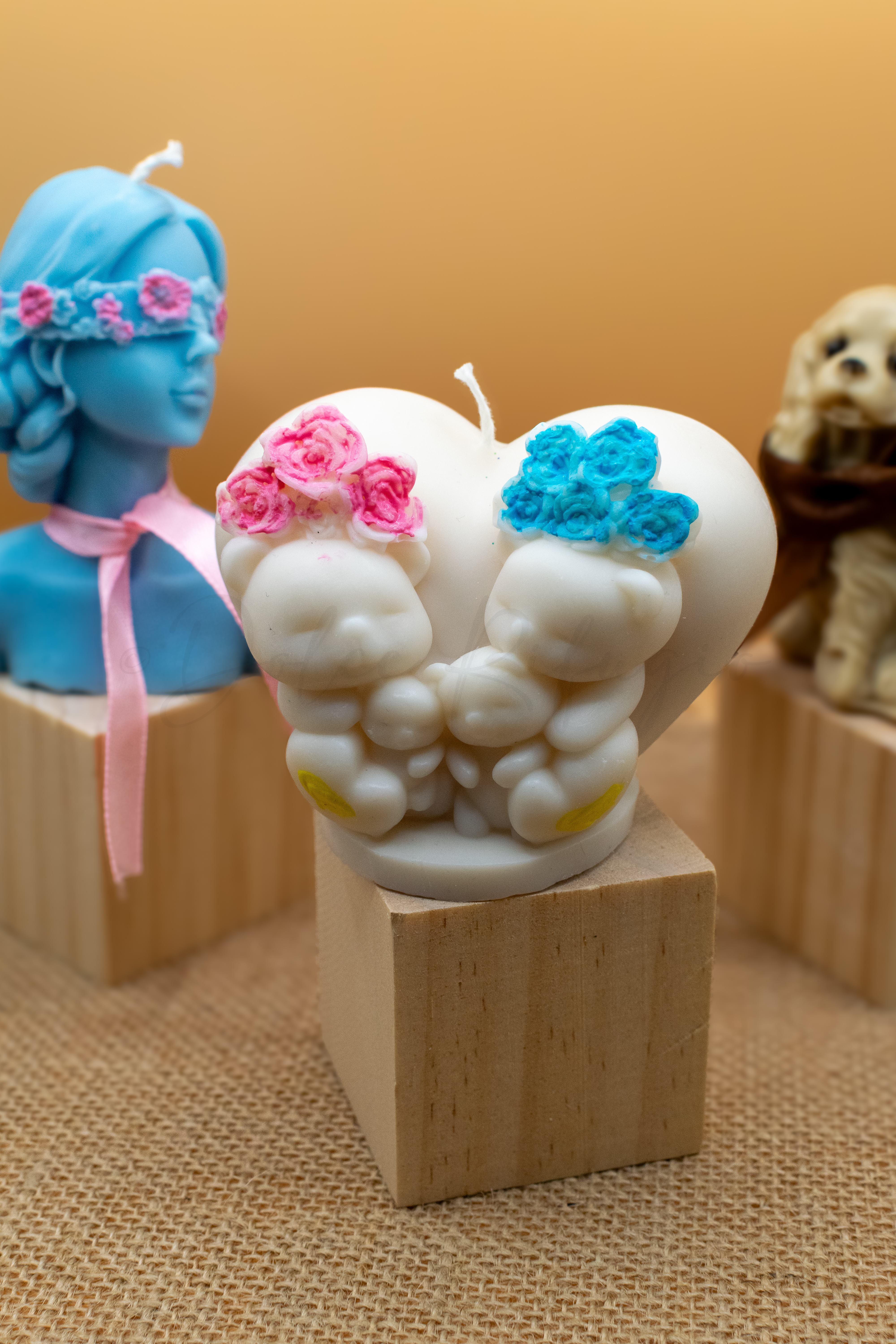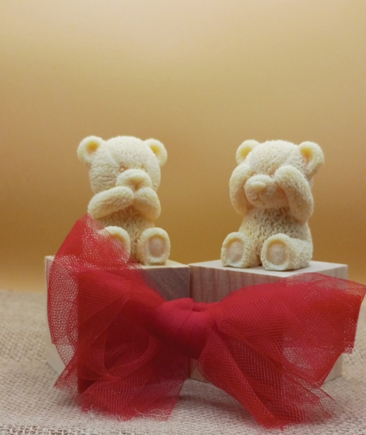 Cuore con orsetti e particolari dipinti a mano